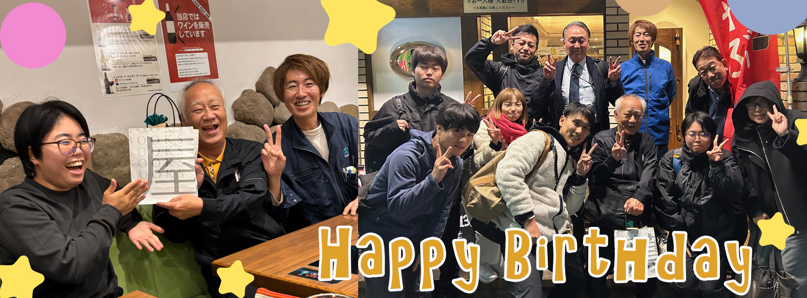 | <主役のメッセージ> この度は代表はじめ、役員幹部の方々からも祝って頂き、大変豪華で楽しい時を過ごさせて頂きました。誠にありがとうございました。新入社員からベテランの社員の方までと層も厚く、別の社屋や部署の仲間、久しぶりに顔を合わせられた仲間、こうした幅広さ、バラエティ豊富さもきんそくの強み(活気)だと実感しました。”大家族”という実感と安心感も同時に感じられることも、またそう感じるこうした機会をつくって頂けることも、きんそくならではのことだと思います。私はこの一員で本当に幸せ者だと毎回思います。感謝です。本当にありがとうございました。H.M |