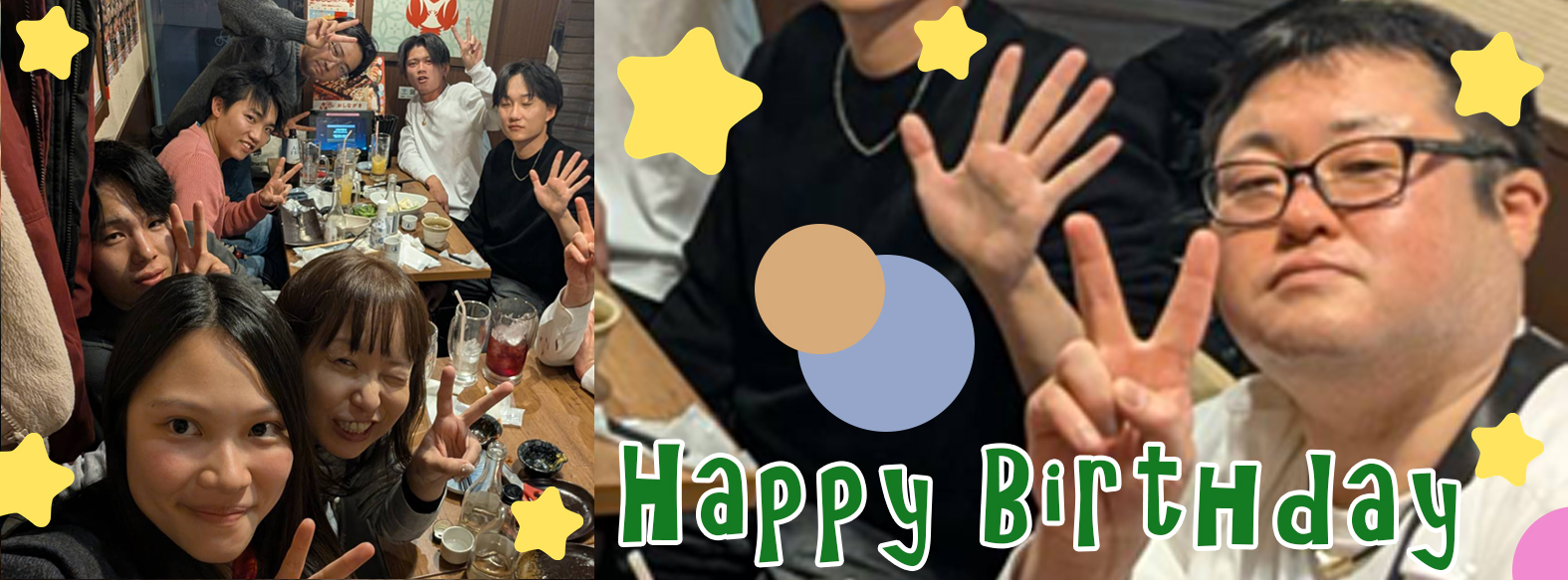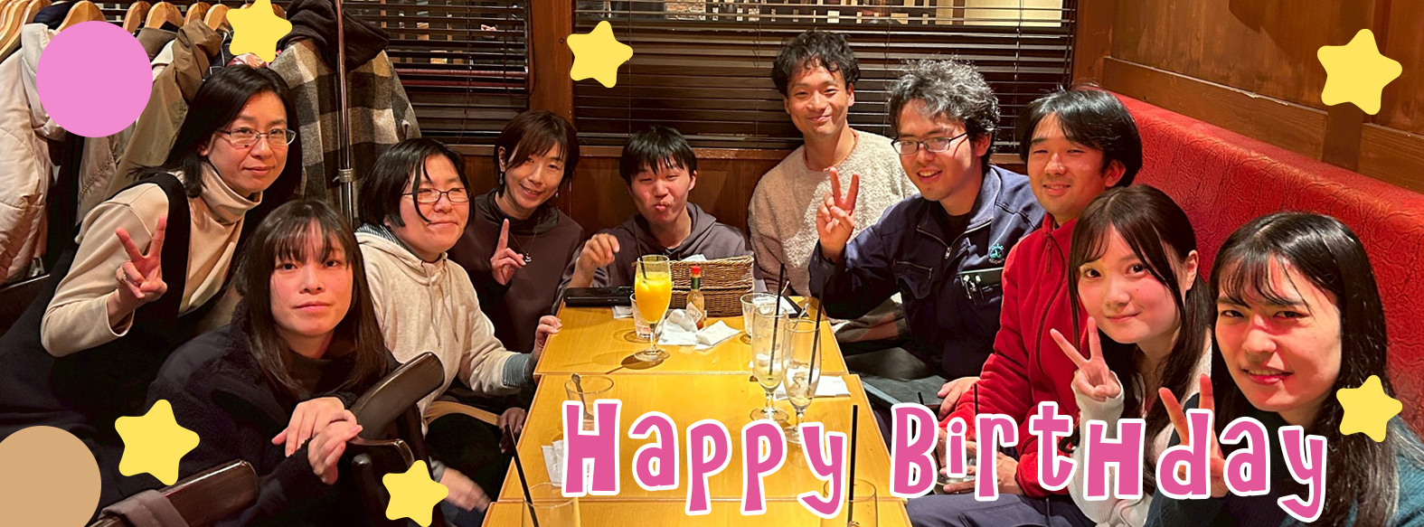 | <主役のメッセージ> バースデーの開催ありがとうございました!今回は総勢20名での開催となり、普段話す機会が少ない方とも交流できとても楽しい時間を過ごすことができました。また今年も一年頑張っていきたいと思います。ありがとうございました。S.K |