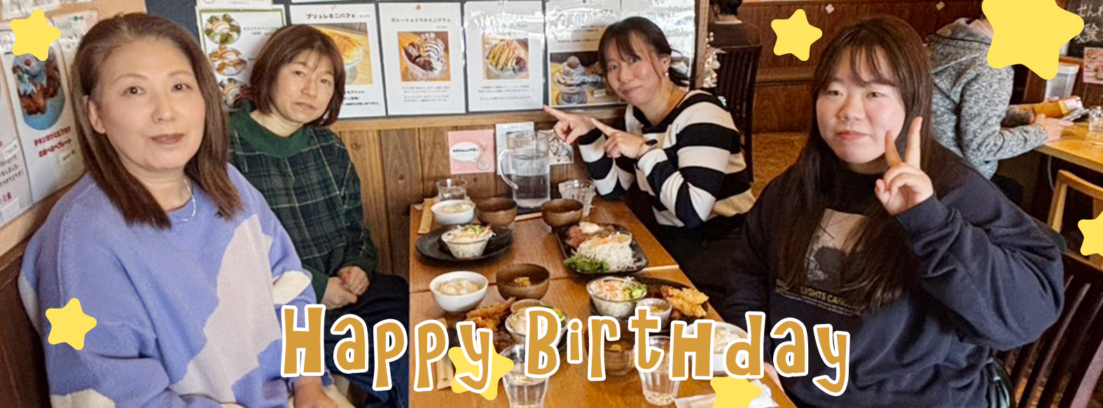 | <主役のメッセージ> この度はバースデーを開催していただきありがとうございました。 美味しい食事を楽しみながら皆さんとお話できてよかったです。 体調管理にも気をつけて頑張って行きたいと思います。Y.T |