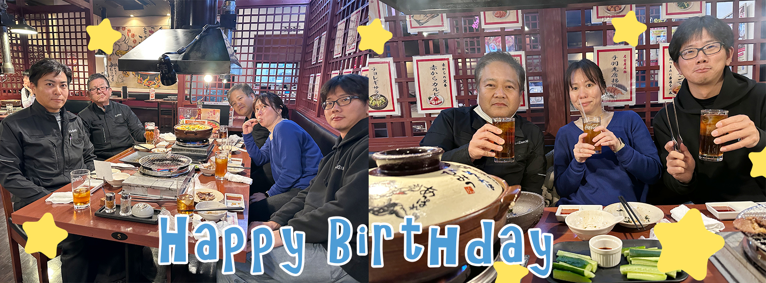 | <主役のメッセージ> 皆さん仕事中のお忙しい中、ランチバースデイを開催して頂きありがとうございました。最近の社内の出来事等教えて貰ったり昔話をしたりと素敵な時間を過ごす事ができました!H.D |