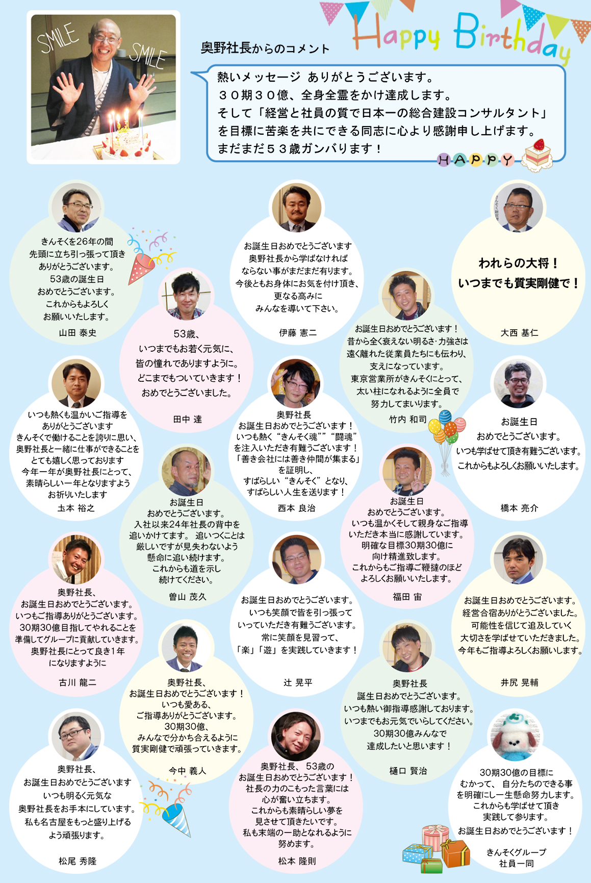この言葉は奥野社長の生き方そのものだと思います。一日一日の積み重ねで今のきんそくがあります。どんな事にでも”ど真剣”に取り組む奥野社長の姿にきんそく従業員一同、刺激を受けています。